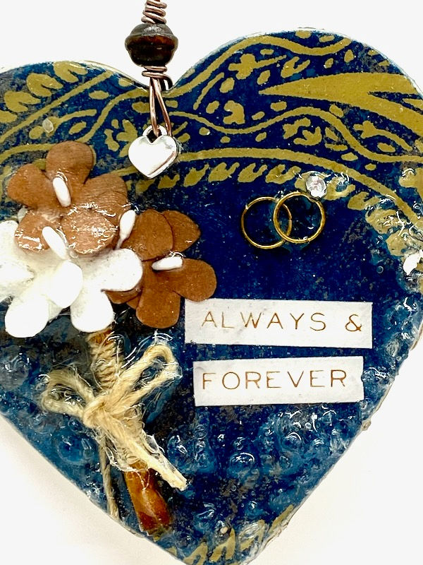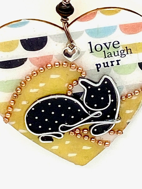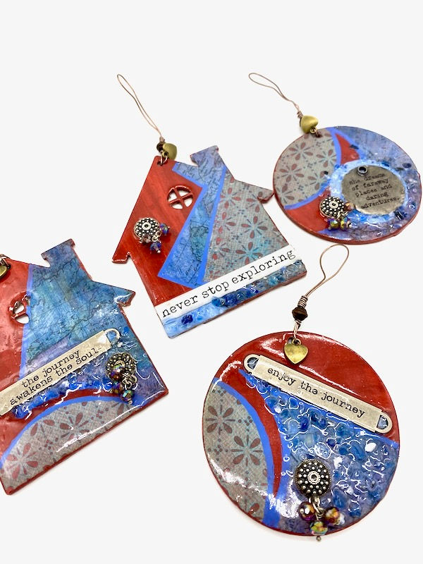 All Season Ornaments are blends of whimsical characters, wire designs, bits of up-cycled jewelry, or crushed gemstones on a colorful, abstract backdrop. A splash of resin adds a naturally durable, glossy finish. Everything I create is designed by hand every time so no two pieces will ever be the same even if it’s the same concept/product/composition. All items are completely one-of-a-kind, unique, and hand-crafted in Greensboro, North Carolina in my art studio (a.k.a. my kitchen).
